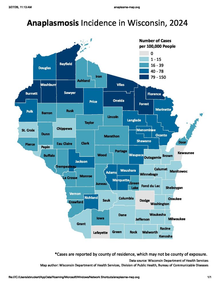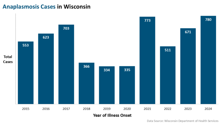 Anaplasmosis is the second most common illness spread by ticks in Wisconsin, after Lyme disease.